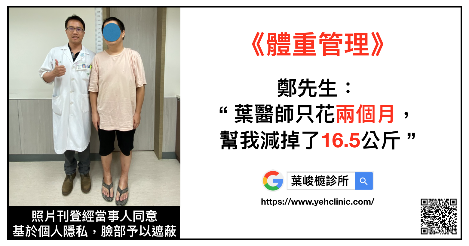 鄭先生:“ 葉醫師只花兩個月,就幫我減掉了 16.5 公斤 ”