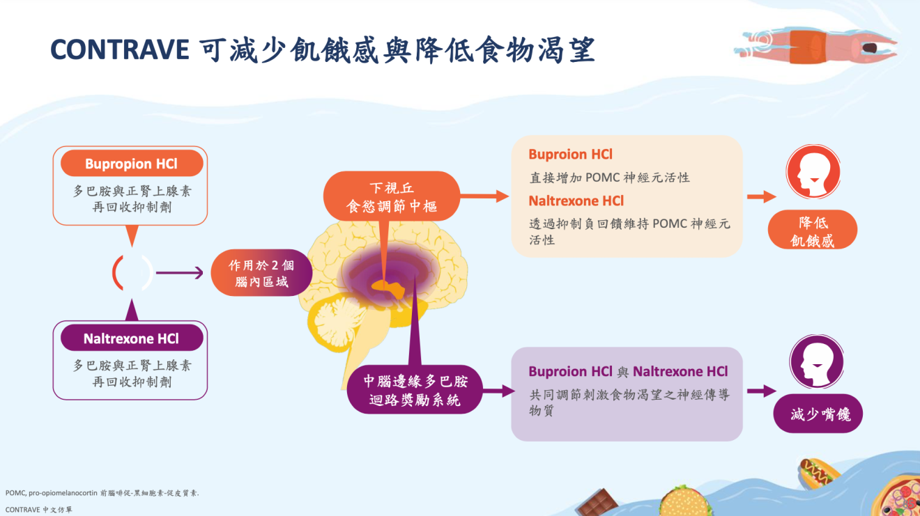 肥胖是慢性疾病,同時伴隨許多併發症。肥胖是結果,它其實有複雜的病理生理機轉,需要對症下藥,才能事半功倍。減重藥物 Contrave 康纖芙®,可以針對食慾進行控制,進一步達到減重成效。