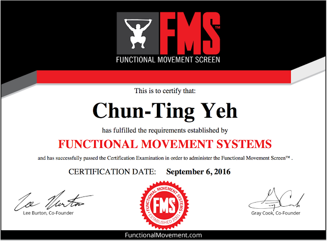 舉例來說,明明肩關節的活動度 (屬於 movement 範圍) 不好,卻強行做出棒球投球的大幅度動作 (屬於 performance 跟 skill 部分),受傷的風險自然提高。那麼,該如何去評估動作型態是否正確?我們可以使用功能性動作檢測 (Functional Movement Screen, FMS) 這個工具。