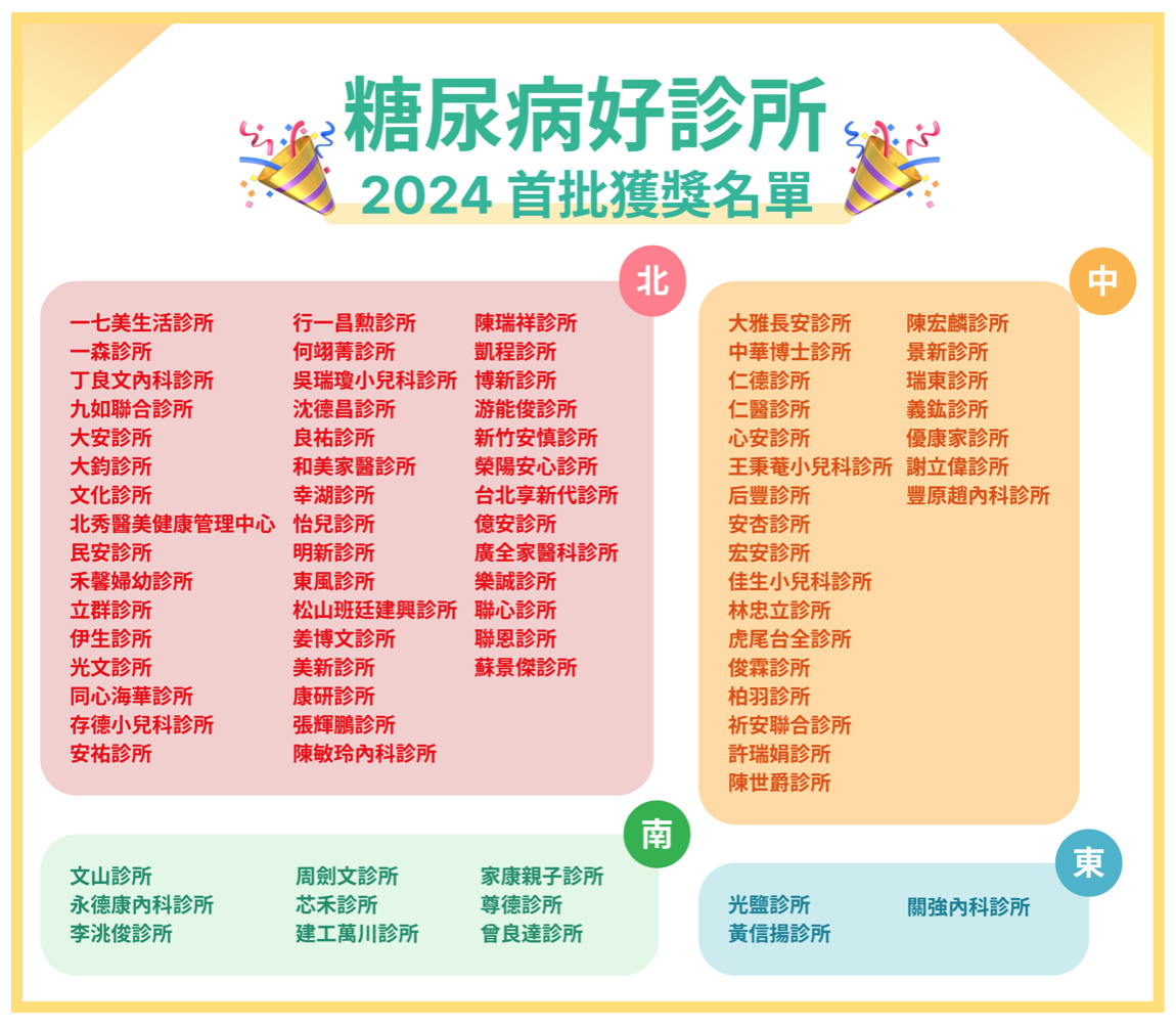 以下,就是全台灣糖尿病好診所 2024 獲獎名單。