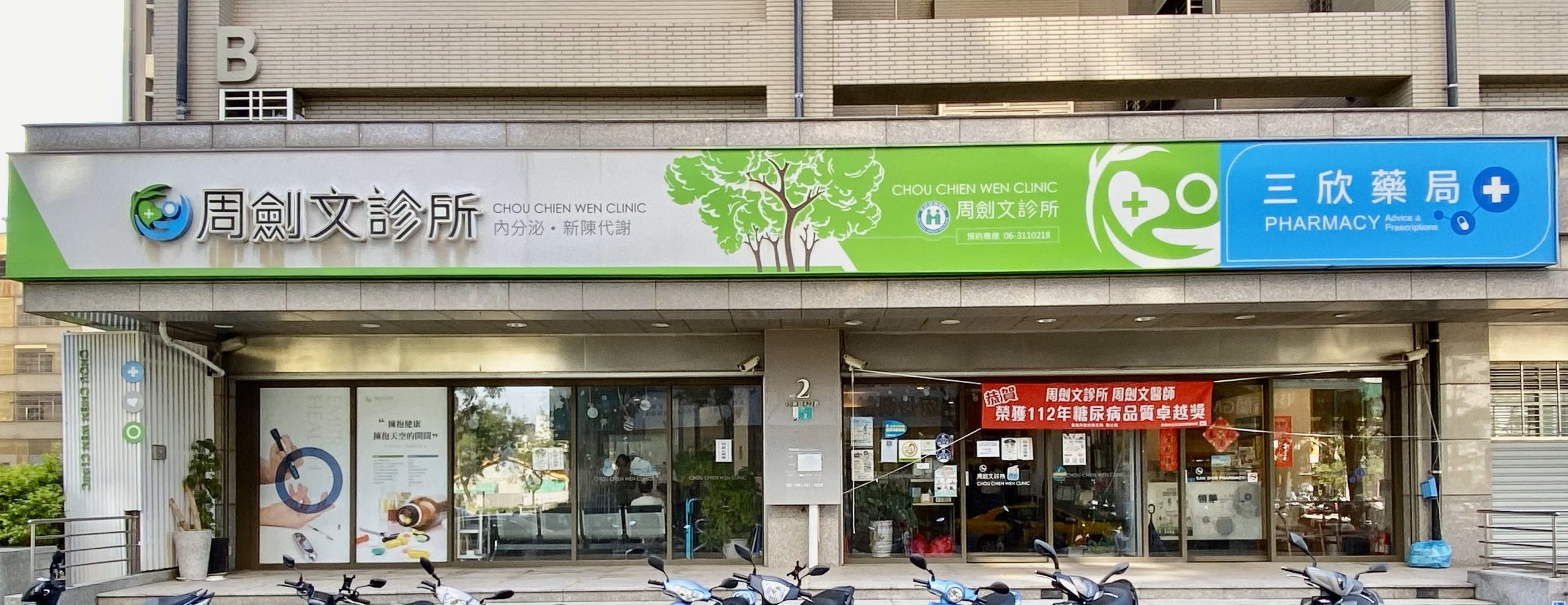 周劍文診所是台南知名的糖尿病治療中心,位於台南市永康區,多次榮獲糖尿病照護品質卓越獎,是台南市糖尿病共照網首選實習醫療院所,台灣南區糖尿病模範參訪診所。周劍文院長是全台知名的糖尿病和甲狀腺治療權威,行醫四十年,經常榮獲糖尿病照護品質卓越獎 ; 葉峻榳醫師身為內分泌新陳代謝專科醫師,專精於糖尿病等慢性疾病照護、肥胖評估與體重管理、賀爾蒙治療。