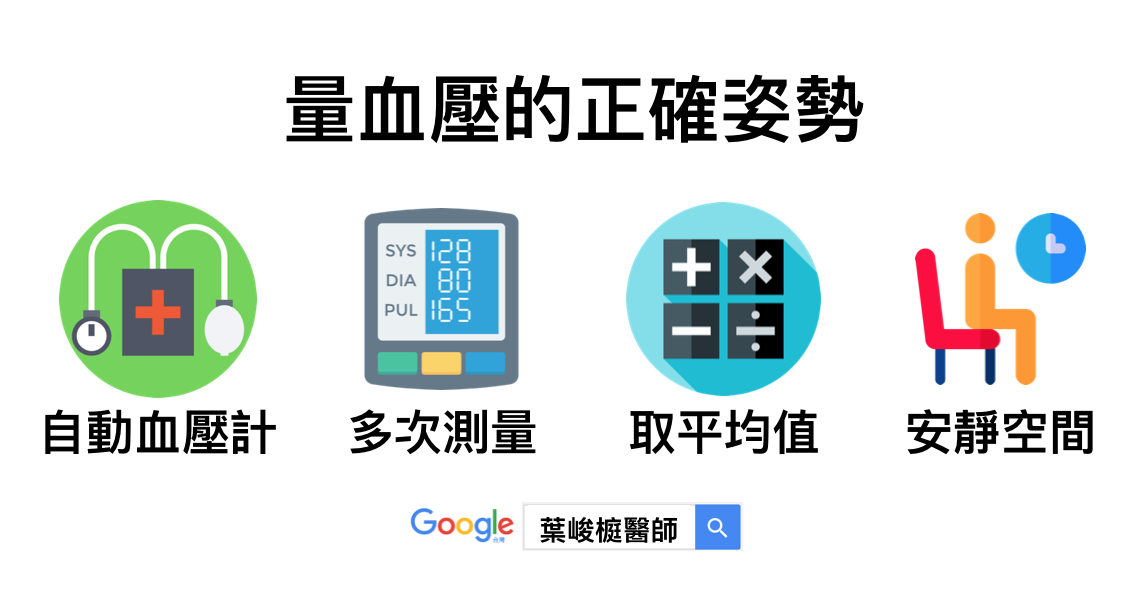 1.使用自動血壓計 (Electronic and automated device):推薦採用標準化的血壓測量設備 ; 在測量前,病人至少要處在休息狀態下五分鐘。