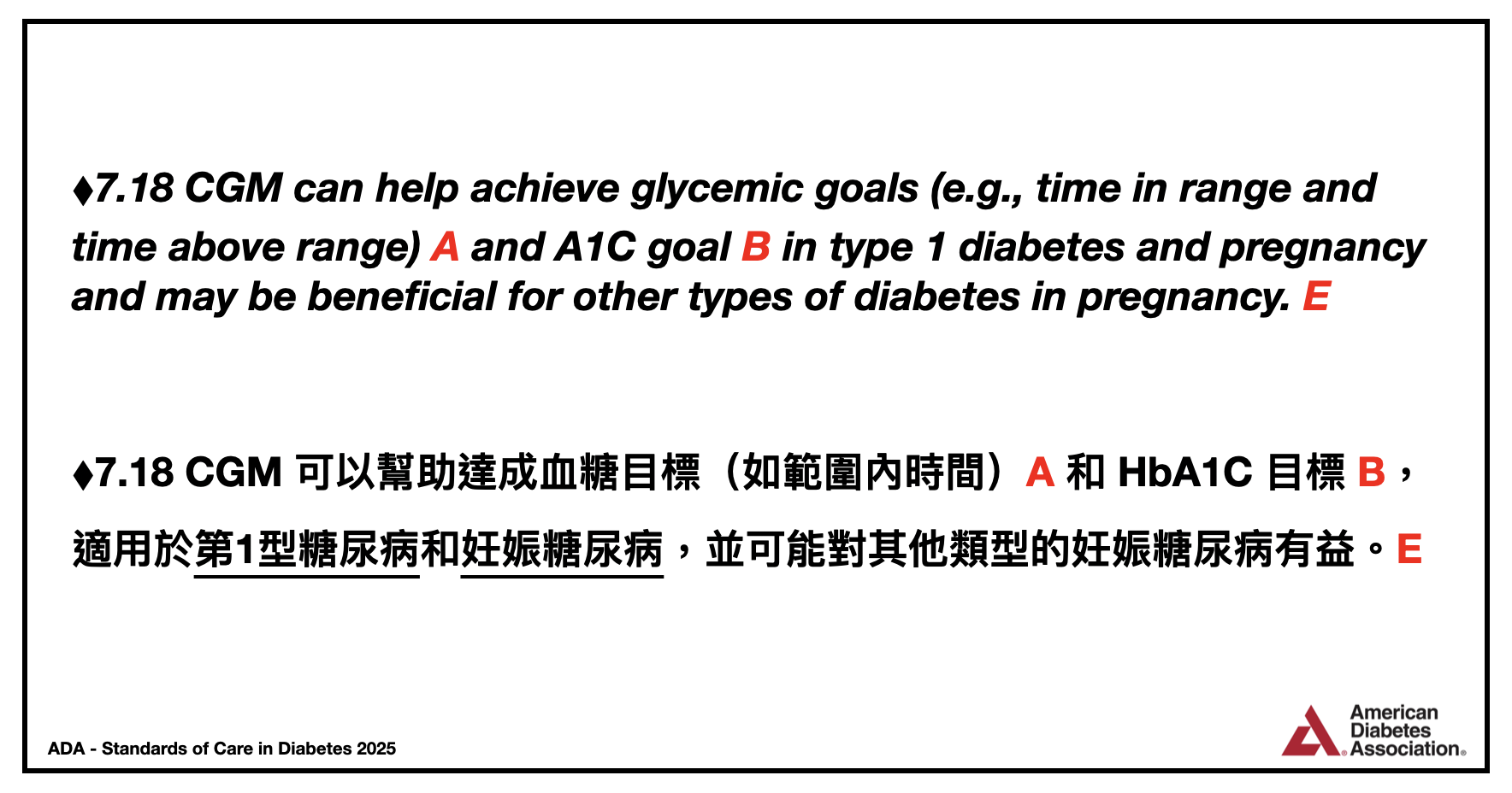 對於孕期糖尿病(Diabetes in Pregnancy)來說,安裝連續血糖監測儀可以掌握血糖變化、改善血糖控制、並降低胎兒併發症。對於血糖波動大的妊娠糖尿病患者,連續血糖監測儀也能提供即時數據,協助調整飲食與藥物。整體來說,藉由連續血糖監測儀的幫助,不僅能夠提升孕期安全,也能減少血糖波動。