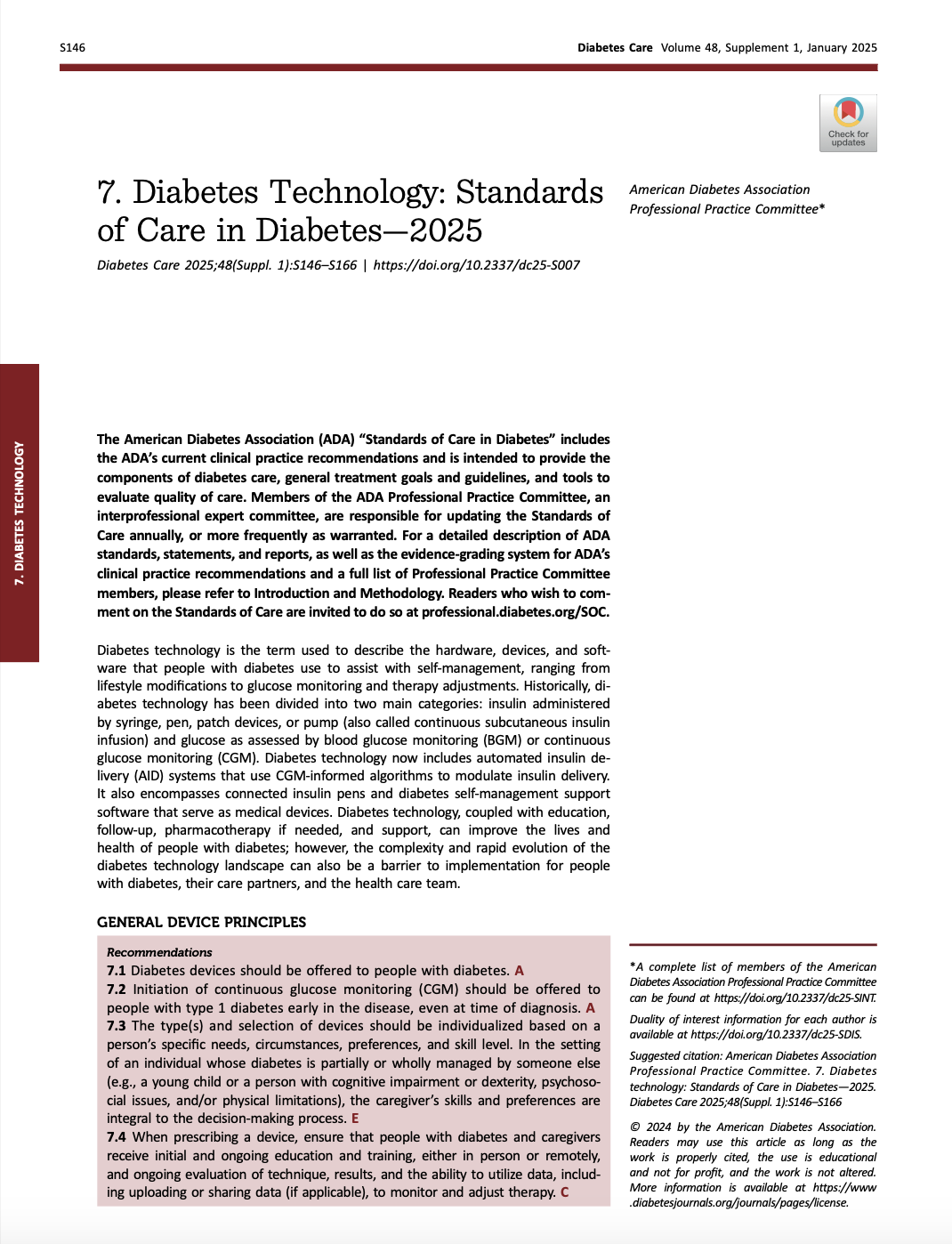 2025年美國糖尿病醫學會指引建議(科技篇)