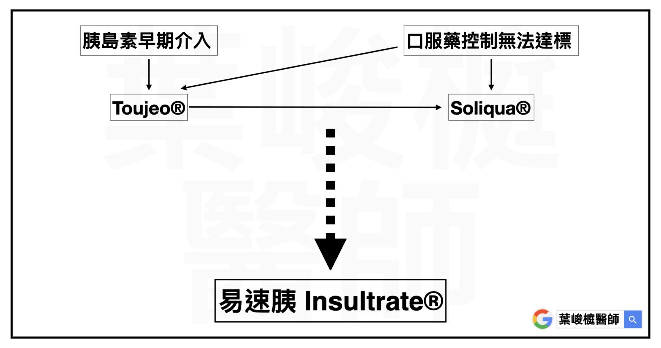 針對新診斷的糖尿病友,建議提早使用胰島素,讓血糖快速達標 ; 此外,只靠口服藥仍無法達標的病友,也可以使用胰島素、或是 GLP-1 RA / Insulin 複方注射用藥。
