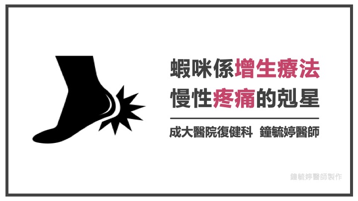 增生療法,最近幾年相當火紅,英文叫做「Prolotherapy」,光看字面,可能不太清楚什麼意思。成大醫院復健科,鐘毓婷主治醫師,同時也是運動醫學專科醫師、增生療法專家 ; 她製作了懶人包,讓我們來瞧瞧增生療法是什麼?
